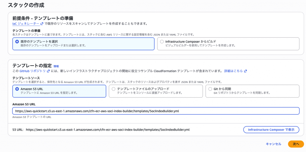 「ECRにプッシュしたら勝手にインデックスを作ってくれる仕組み(Lambda)」 は、AWS SOCI Index BuilderというAWS公式のCloudFomaritonテンプレートが用意されています。